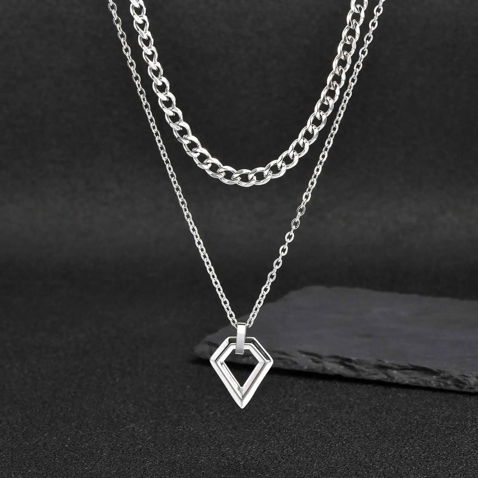 2pcs Casual Geometry Pendant Necklace for Men Women,Trendy Stainless Steel Layering Necklaces,Waterproof Small Pendant Gift