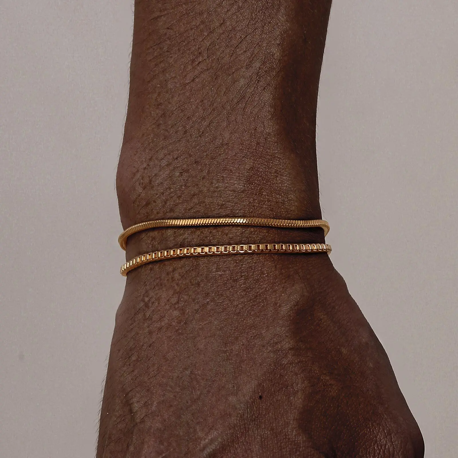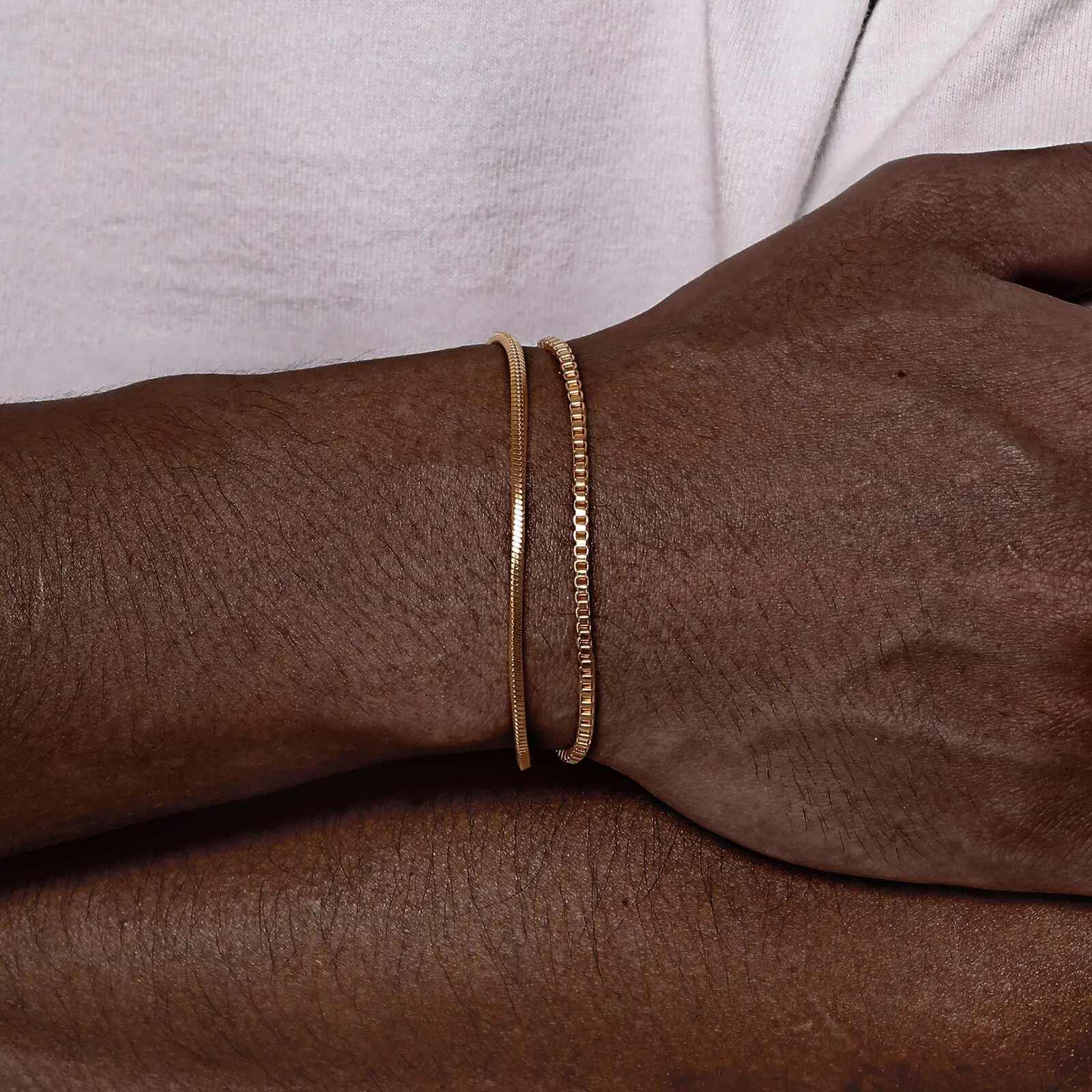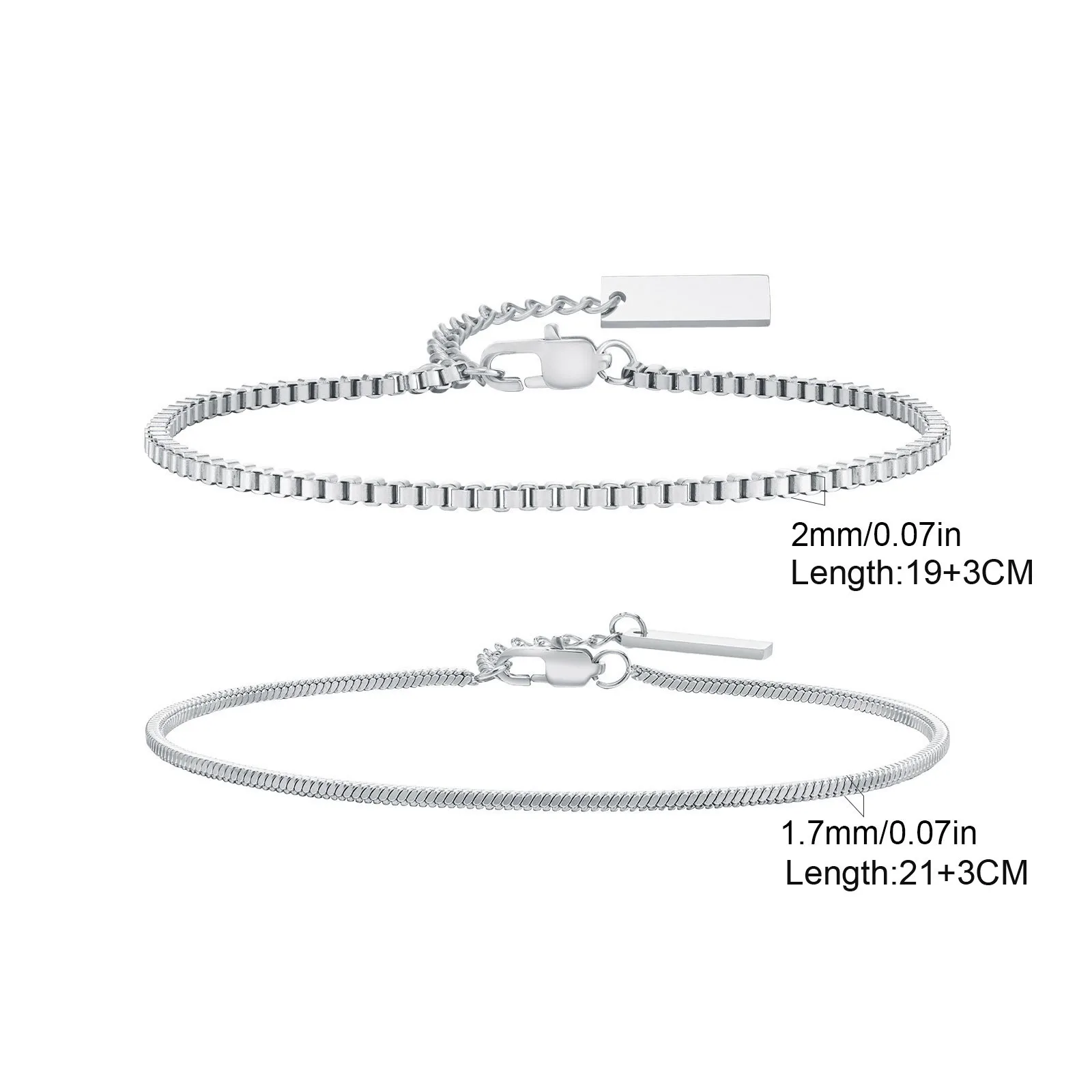 2pcs/set Simple Thin Chain Bracelets for Men,Square Box Chain Bracelet,Stainless Steel Jewelry Gift